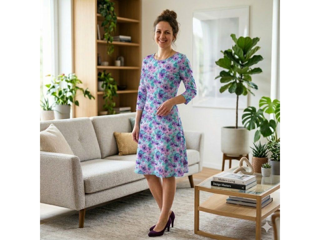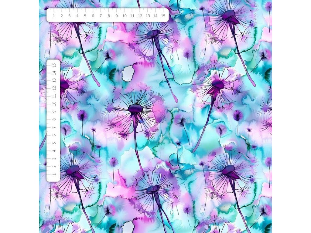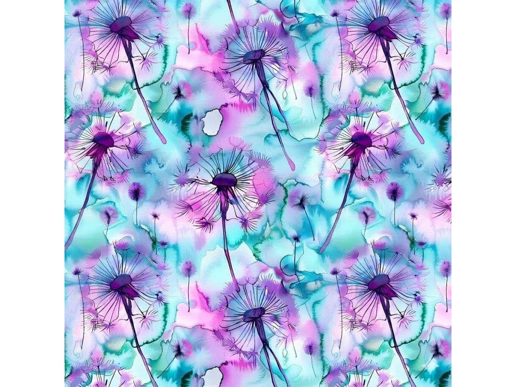 El. teplákovina - Akvarelové pampelišky tyrkys-fialové