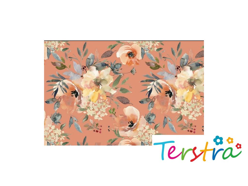 Elastická teplákovina - květy na lososové