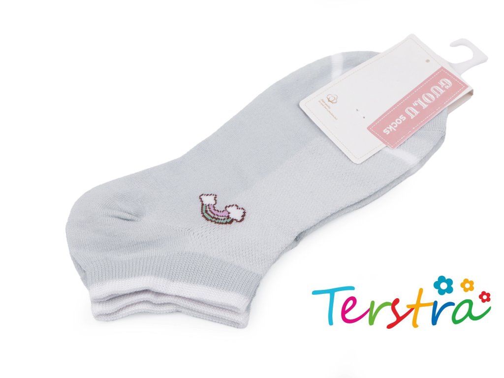 Příjemné bavlněné ponožky využijete na nošení po celý rok. Hodí se pro ženy i dívky. Jsou kotníkové, pružné a prodyšné. Mají plochý šev ve špičce - netlačí.